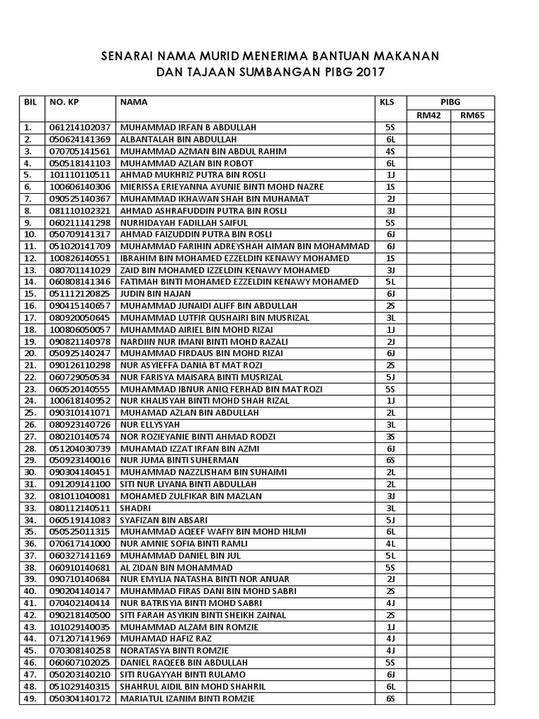 Senarai Nama Murid Menerima Bantuan Makanan Pdf